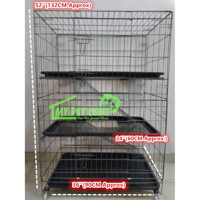 Cat Cage 3Ft 3 Layer Full Tray Cage / Sangkar Kucing 3 Tingkat 36 - kucing 3 kaki